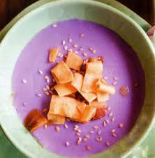 Khi dùng, múc ra chén, vớt lá dứa ra bỏ, rưới thêm nước cốt dừa, rải mè lên.